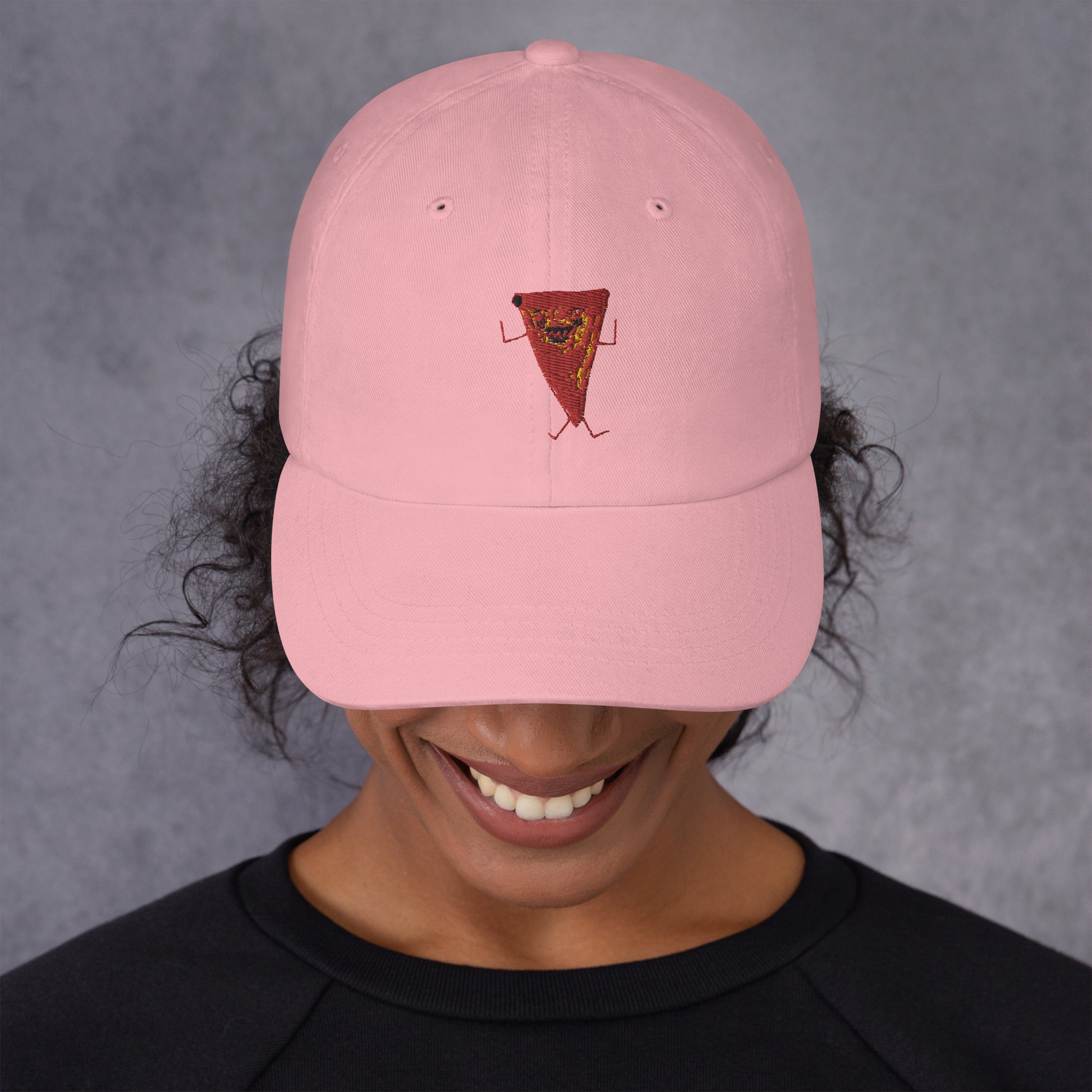 Embroidered Pizza Monster Drawing on a Dad hat. Yes it's a little wonky looking and yes that's the point. Print on demand.
